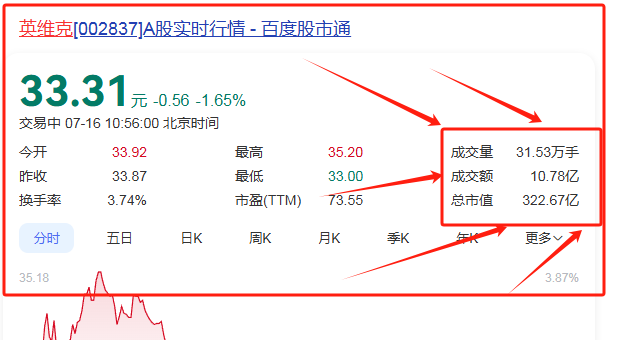截至发稿(2025年7月16日盘中),英维克的股票价格为33.31元/股,总市值高达322.67亿元。